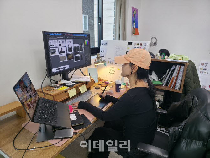 김미현 토핑즈 대표가 31일 종로구 이화동의 사무실에서 일하고 있다.(사진=이지은 기자)