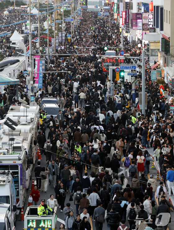 15일 오후 부산 수영구 광안리해수욕장 일대가 '제20회 부산불꽃축제'를 관람하기 위한 관람객들로 북적이고 있다. 2025.11.15/뉴스1 © News1 윤일지 기자