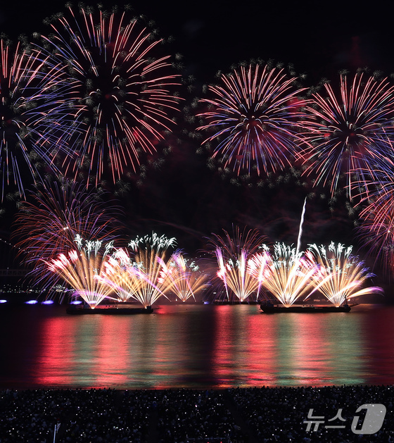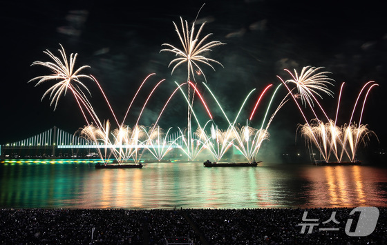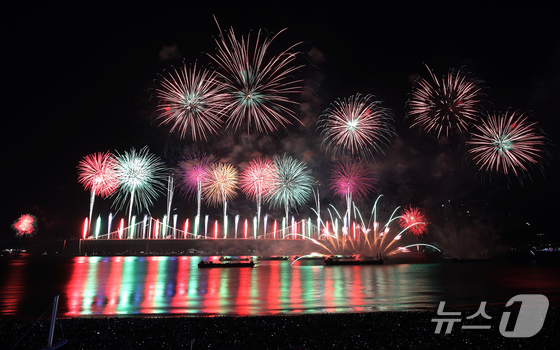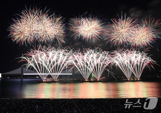 16일 부산 불꽃축제의 20번째 불꽃이 광안리해수욕장 하늘을 수놓았다.