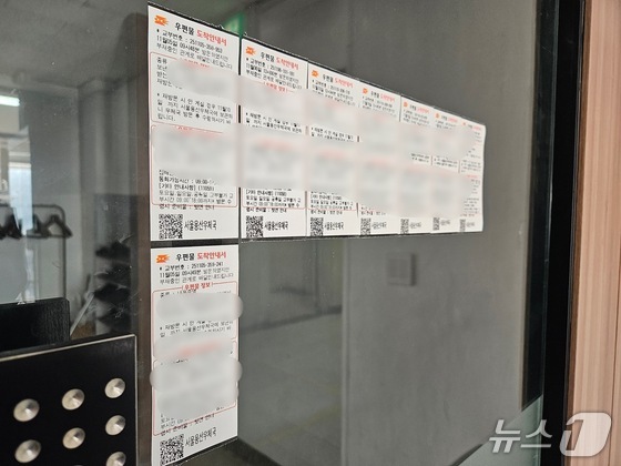 조립PC 업체 '컴마왕'이 하루아침 영업을 중단한 가운데 서울 용산구 컴마왕 본사 입구에 우편물 도착안내서가 줄지어 붙어있다. 2025.11.19/뉴스1 © News1 유채연 기자