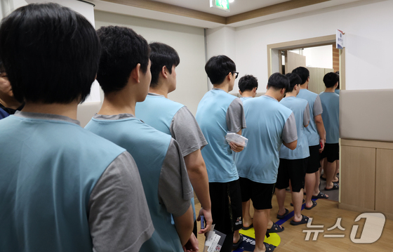 15일 오전 서울 영등포구 서울지방병무청에서 열린 올해 첫 병역판정감사에서 병역의무자들이 검사를 받고 있다. 검사 대상은 올헤 19세가 되는 2007년생, 20세 검사 후 입영을 신청한 2006년생, 병역판정검사 연기자 등 약 25만명이다. 2026.1.15/뉴스1 © News1 김명섭 기자