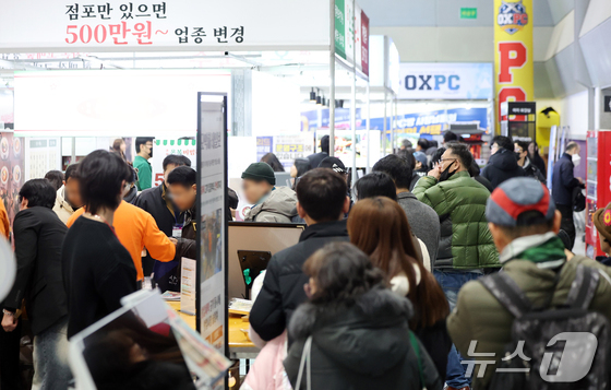 15일 서울 강남구 코엑스에서 열린 ‘제82회 프랜차이즈 창업 박람회 2026’을 찾은 방문객들이 부스를 둘러보고 있다. 2026.1.15/뉴스1 © News1 김진환 기자
