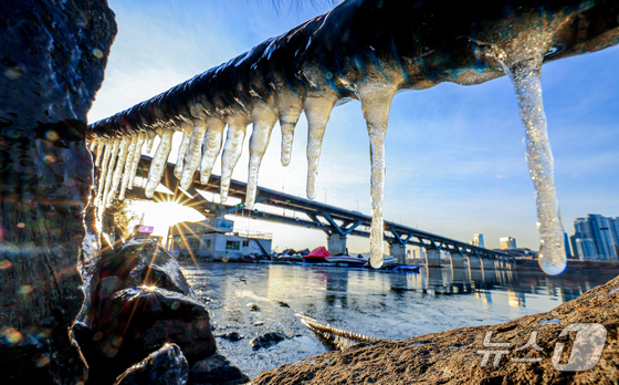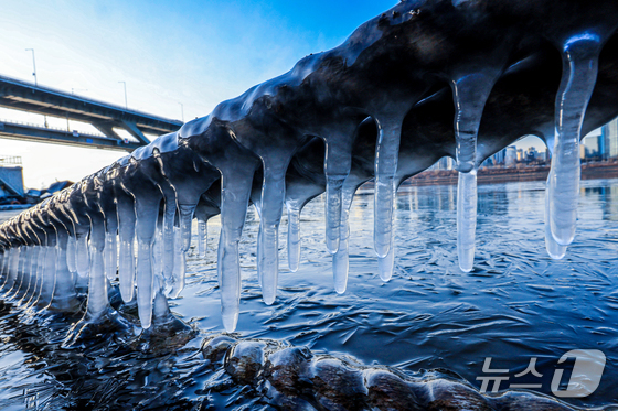 한파주의보가 발효된 20일 서울 광진구 인근 한강에 고드름이 얼어있다. 2026.1.20/뉴스1 © News1 이호윤 기자