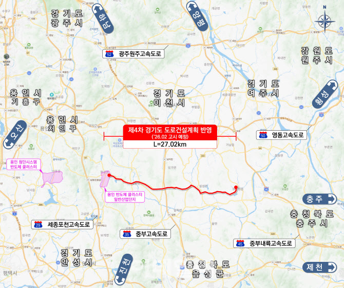 경기도 이천부터 용인까지 이어지는 27㎞ 길이 신설 도로 지방도 318호선 밑으로 전력망을 까는 ‘신설 도로 지중화’ 방식이다. 이 방식을 적용하면 반도체 클러스터 전력 공급에 가장 큰 걸림돌로 작용하는 ‘송전탑 갈등’도 없앨 수 있을 전망이다.