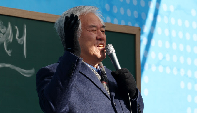 전광훈 사랑제일교회 목사가 지난 11일 오전 서울 종로구 동화면세점 앞에서 열린 전국 주일 연합 예배에서 설교를 하고 있다. (사진=뉴시스)