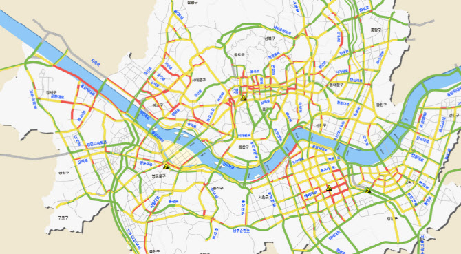 23일 오후 10시 25분쯤 서울 교통상황. (자료= 서울시 교통정보 시스템)