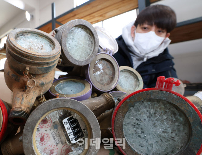 경기 수원시 장안구 파장정수장 자재창고에서 수원시상수도사업소 직원이 추위에 동파된 수도계량기를 정리하고 있다. (사진=뉴스1)