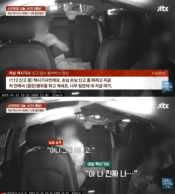 여성 택시 기사를 향해 음담패설을 쏟아내고 음란행위까지 한 남성의 모습이 포착됐다.