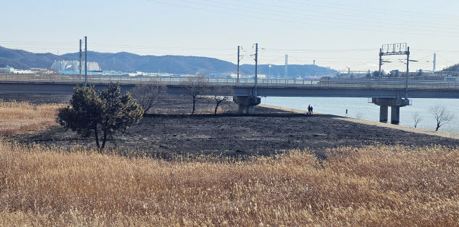 25일 울산 북구 태화강 물억새 군락지가 불에 탄 모습. (사진=연합뉴스)