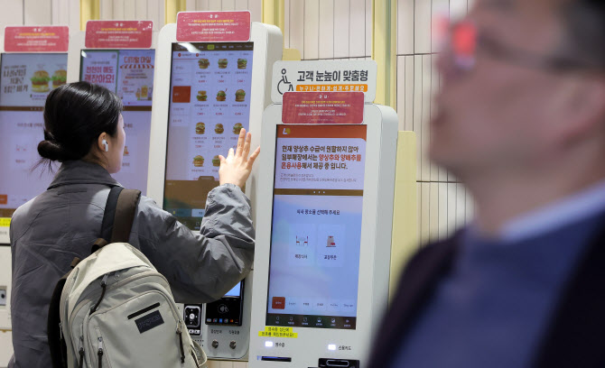 19일 서울 시내 롯데리아 매장 키오스크에 관련 안내문이 부착되어 있으며, 주문 화면에도 관련 사항이 안내되고 있다. 사진은 내용과 관계없음. (사진=뉴시스)