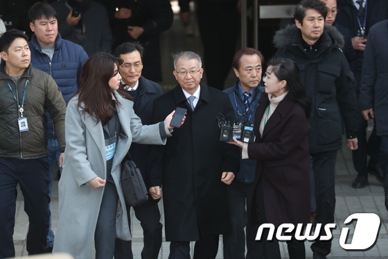사법행정권 남용 의혹 정점으로 지목된 양승태 전 대법원장이 지난 2019년 1월 23일 오전 서울 서초구 서울중앙지방법원에서 열리는 구속 전 피의자심문(영장실질심사)을 마친 후 법정을 나서고 있다. 2019.1.23/뉴스1 © News1 박세연 기자