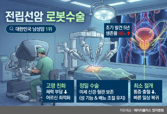 전립선암은 갑상선암과 함께5년 생존율이 95%이상으로 높지만, 전이 시에는 30% 수준으로 급감한다. 조기 발견과 함께 로봇수술 등 정밀 치료가 병행될수록 치료 효과는 배가될 전망이다.