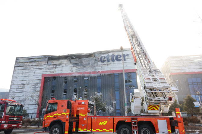 31일 오전 충북 음성군 맹동면 두성리의 한 생활용품 제조공장에서 소방당국이 잔불 정리를 하고 있다. (사진=연합뉴스)