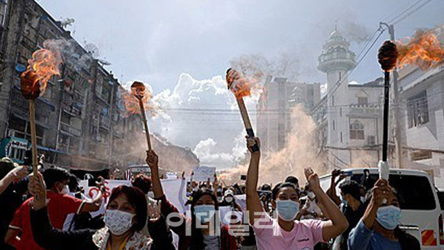 2021년 미얀마 양곤에서 군부 쿠데타에 반대하는 여성들 (사진=로이터·연합뉴스)