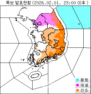 건조경보는 강원 동해안 및 산지, 경북(포항·경주 등), 경남(창원·진주 등), 대구, 부산, 울산 지역이다.