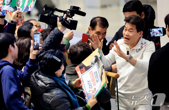 전한길 전 한국사 강사가 3일 인천국제공항 제2여객터미널로 귀국해 지지자들을 향해 손을 흔들고 있다. 2026.2.3/뉴스1 © News1 이호윤 기자