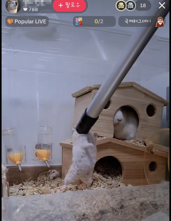A씨는 동물보호법 위반으로 고발된 이후에도 햄스터를 청소기로 빨아들이는 등 학대를 이어갔다(유튜브 생중계 캡처). © 뉴스1