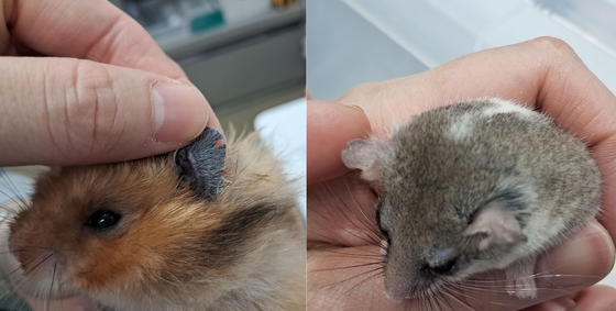 동물자유연대가 구조해 격리 조치한 햄스터의 진료 사진. 반복적인 교상으로 귀가 찢어진 모습(동물자유연대 제공) © 뉴스1