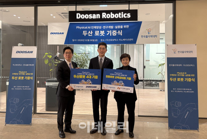 이번 행사는 지난해 7월 양 기관이 체결한 업무협약(MOU)의 후속 조치로 마련됐다. 두산로보틱스는 이날 협동로봇 4대를 한국폴리텍대학에 기증하며 피지컬 AI 인재 양성에 힘을 보탰다.