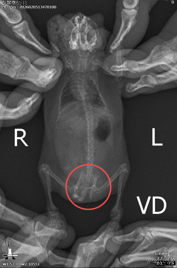 정글리안 햄스터의 골반이 골절된 흔적. (사진=동물자유연대 제공)