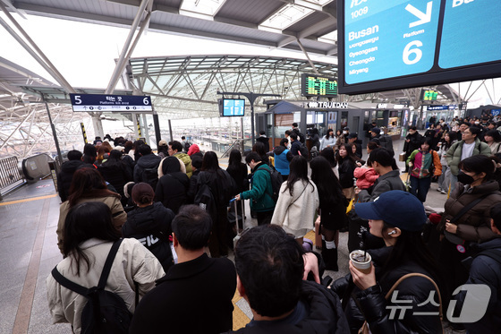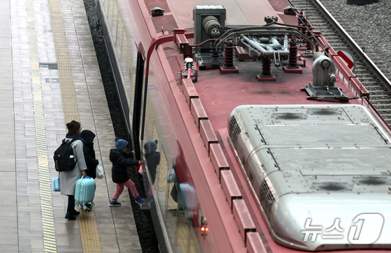 설 명절 연휴를 앞둔 13일 오전 서울역에서 귀성객들이 고향으로 향하는 열차에 오르고 있다. 2026.2.13 © 뉴스1 구윤성 기자