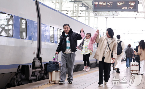 설 명절 연휴를 앞둔 13일 오전 서울역에서 귀성길에 오른 가족이 열차에 타기 위해 이동하고 있다. 2026.2.13 © 뉴스1 구윤성 기자