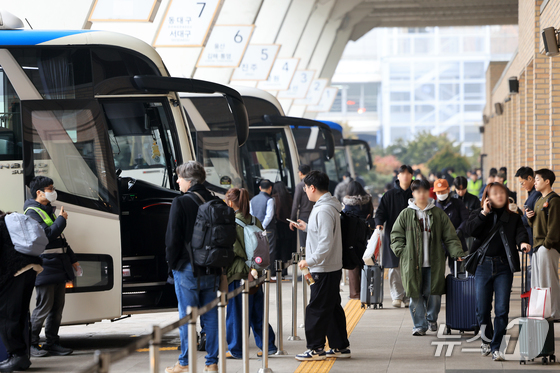 설 연휴를 하루 앞둔 13일 오후 서울 서초구 고속버스터미널에서 귀성객들이 버스에 탑승하고 있다. 2026.2.13 © 뉴스1 이호윤 기자