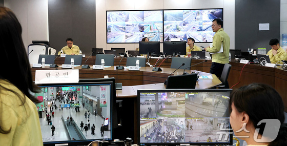 13일 세종시 정부세종청사 국토교통부에 마련된 설 특별교통대책 상황실에서 관계 부처 공무원들이 철도, 공항, 고속도로 등을 모니터링 하며 원활한 귀성·귀경을 위해 전국의 상황을 점검하고 있다. 2026.2.13 © 뉴스1 김기남 기자