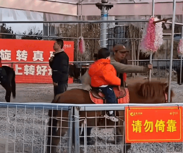 산시성 시안 관광지에서 운영되던 말을 이용한 놀이기구 모습. (웨이보 갈무리)
