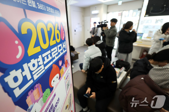 지난달 23일 오전 광주 동구 헌혈의집 충장로센터가 헌혈 대기자들로 붐비고 있다. 대한적십자사 광주·전남혈액원은 이날 헌혈자들에게 두바이쫀득쿠키 증정 행사를 진행한다.© 뉴스1 이승현 기자