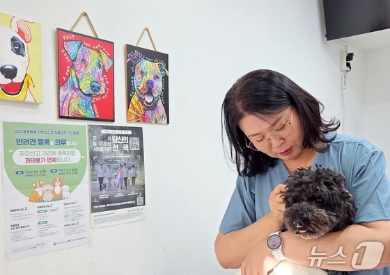 이봉희 하스펫탈동물병원 원장이 구조견과 교감하고 있다. © 뉴스1