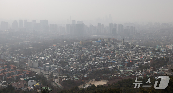 황사의 영향으로 서울을 비롯한 수도권에 올해 첫 미세먼지 경보가 발령된 22일 오후 서울 중구 남산에서 바라본 도심이 희뿌연 모습을 보이고 있다. 2026.2.22 © 뉴스1 오대일 기자