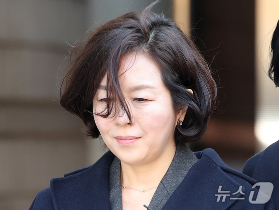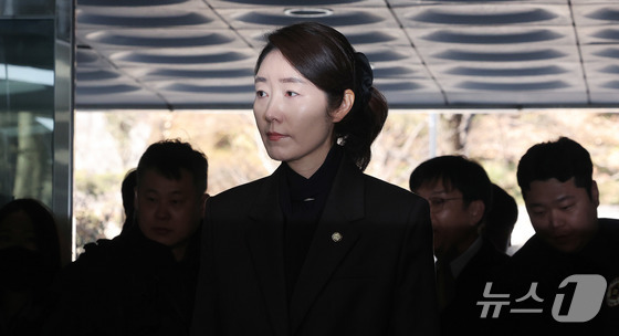 '1억 공천헌금' 의혹을 받는 김경 전 서울시의원이 3일 서울 서초구 중앙지법에서 열린 구속 전 피의자 심문을 마친 뒤 법정을 나서고 있다. 2026.3.3 © 뉴스1 박지혜 기자