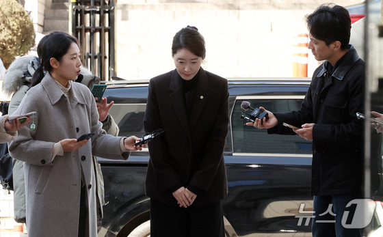 '1억 공천헌금' 의혹을 받는 강선우 무소속 의원이 3일 서울 서초구 중앙지법에서 열린 구속 전 피의자 심문에 출석하고 있다. 2026.3.3 © 뉴스1 박지혜 기자