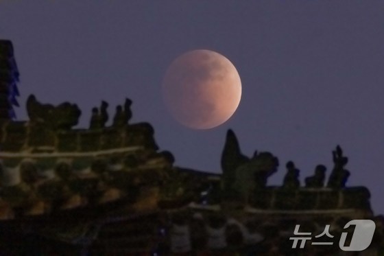 3일 중국 베이징 헤이룽장성 상공에서 개기월식이 진행되고 있다. © 신화=뉴스1