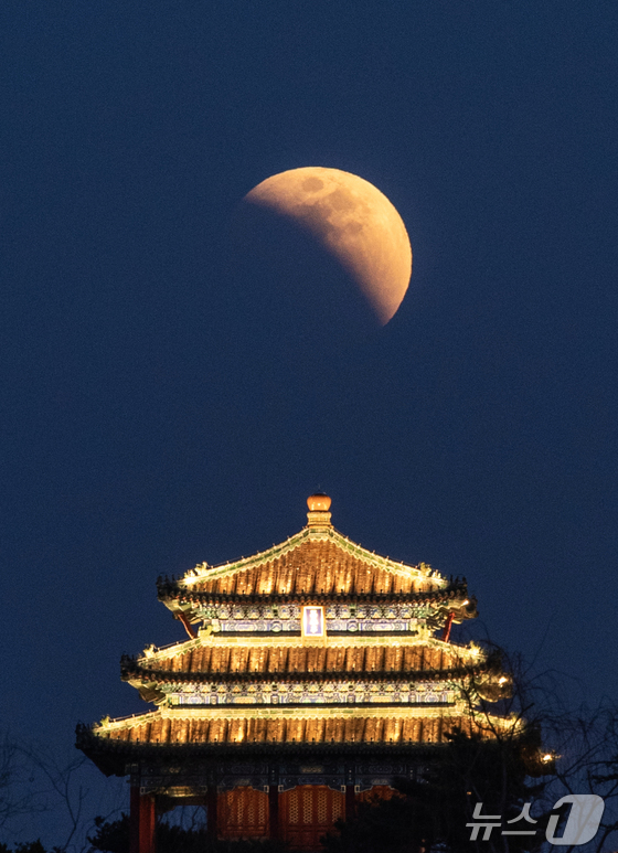 3일 중국 베이징 상공에서 개기월식이 진행되고 있다.© 신화=뉴스1