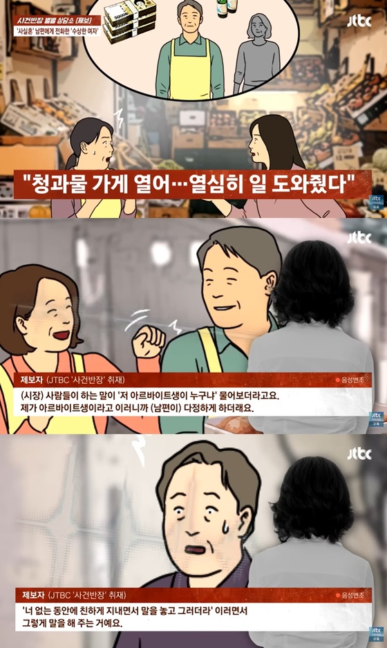 알고 보니 남편은 알바생에게 미혼이라고 말해왔던 것. 이후에도 밤늦게 아르바이트생의 전화를 받기 위해 자리를 피하는 일이 잦아졌다.