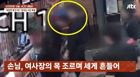 신고를 받고 출동한 경찰이 제지하는 상황에서도 폭행은 이어졌다. 손님은 남자 사장의 목을 조르며 몸싸움을 벌였고 이 과정에서 남자 사장은 손가락 골절을 입었다.