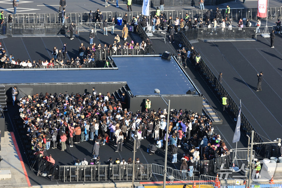 방탄소년단(BTS) 컴백 공연일인 21일 서울 광화문광장에서 아미(BTS 팬덤)들이 입장을 기다리고 있다. 2026.3.21 © 뉴스1 박지혜 기자