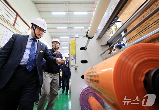 이날 현장에서는 종량제봉투 생산 공정 전반과 재생원료 활용 현황에 대한 점검이 이뤄졌다. 김 장관은 생산 설비와 완제품 상태를 직접 확인하며 공급 여력과 생산 속도 등을 점검했다.