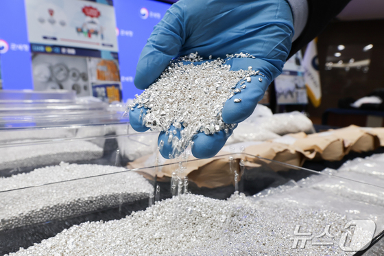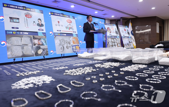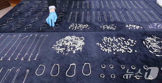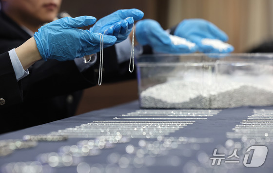 8일 오전 인천 중구 인천공항세관에서 열린 '은 밀수 증가에 따른 집중 단속 방안 브리핑'에서 은 밀수 적발 물품이 전시돼 있다. 2026.4.8 © 뉴스1 이종수 인턴기자