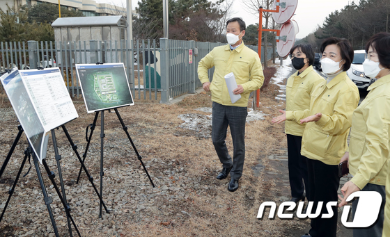 지난 2021년 1월 13일 추미애 당시 법무부 장관이 경기도 화성여자교도소 신축 예정 부지를 둘러보고 사업개요를 보고받고 있다.(법무부 제공) 2021.1.13 © 뉴스1 김명섭 기자