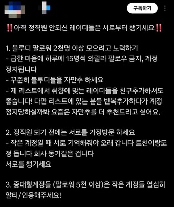 숫자만 보면 다소 어렵게 보일 수 있지만, 블루레이디들은 '블루레이디 트친소(트위터 친구를 소개합니다)' 등을 열어 서로 팔로워 확장을 돕는다. 또한 적극적으로 서로의 글을 리트윗하면서 수익 창출 요건을 빠르게 충족시킨다. 실제로 뉴스1이 만난 블루레이디 대부분이 최소 2주에서 한두달 사이에 수익창출 요건은 충족했다고 설명했다.