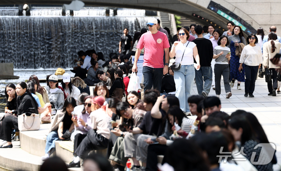 서울 낮 최고 기온이 25도를 웃돌며 초여름 날씨가 이어지는 16일 서울 중구 청계천에서 시민들이 휴식을 취하고 있다. 2026.4.16 © 뉴스1 최지환 기자