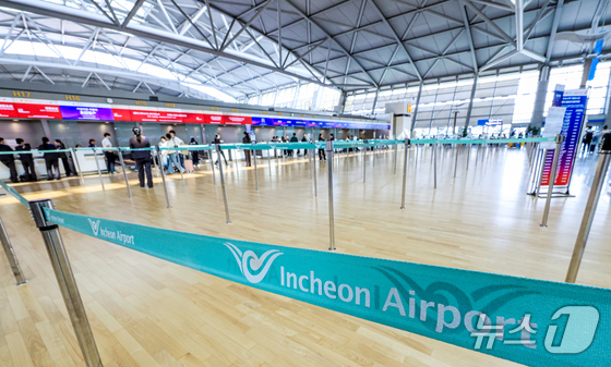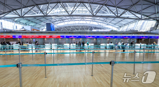 중동 사태에 장기화로 국제선 항공권의 유류할증료가 사상 최고 수준으로 치솟은 16일 인천국제공항 제1여객터미널 출국장이 한산한 모습을 보이고 있다. 2026.4.16 © 뉴스1 이호윤 기자