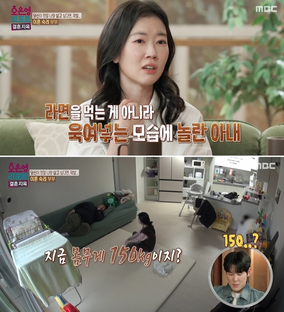 이날 방송에 등장한 남편은 체중 약 150㎏으로, 한 달 빵값만 70만 원에 달할 정도로 과도한 식습관을 보였다. 밥솥에 떡볶이를 넣어 먹거나 아이스크림 4~5인분을 한 번에 먹는 모습도 공개됐다.