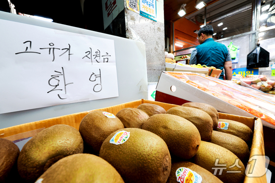 정부의 고유가 피해지원금 1차 지급 신청을 하루 앞둔 26일 서울 마포구 망원시장에 '고유가 지원금' 사용가능 문구가 붙어 있다. 고유가 피해지원금은 소득 하위 70%를 대상으로 1인당 10만~60만원까지 차등 지급된다. 지급 방식은 신용·체크카드, 선불카드, 지역사랑상품권 중 선택할 수 있으며 신청 첫 주는 혼잡 방지를 위해 출생연도 끝자리를 기준으로 하는 '요일제'가 적용될 예정이다. 2026.4.26 © 뉴스1 이호윤 기자