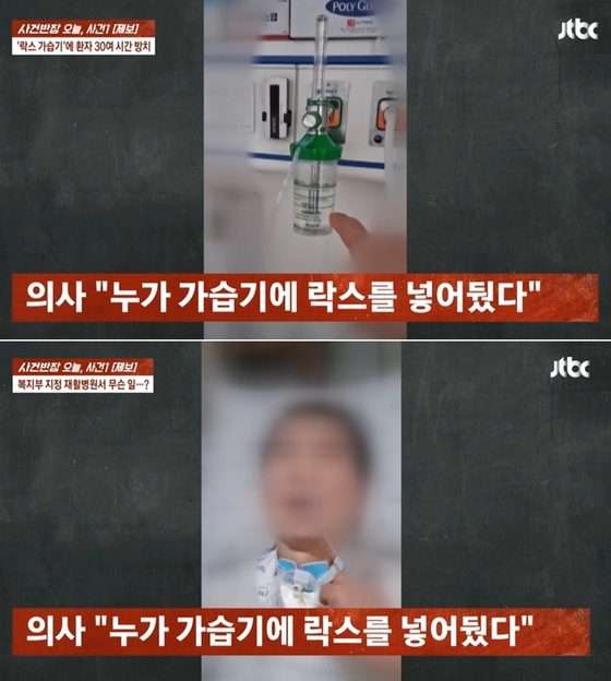 재활병원 병실 가습기에 락스가 들어가는 사고가 발생해 환자가 폐 손상 증상을 보였지만 병원 측은 책임을 회피했다.