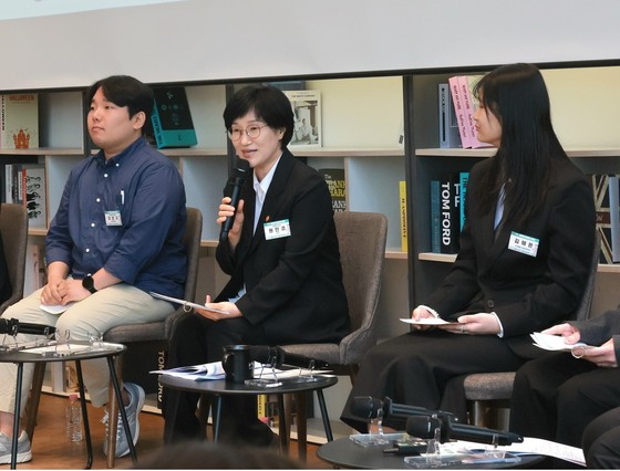 원민경 성평등가족부 장관이 29일 오후 서울 중구 커뮤니티하우스 마실에서 열린 '제 1차 성별균형 현장 정책제안 성평등 언박싱 토크'에 참석해 청년들과 함께 '청년의 몸과 마음, 성별의 상자열기'를 주제로 대화하고 있다.(성평등부 제공)