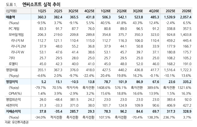 정 연구원은 “동사는 11월 지스타2025 메인 스폰서로 참가하며, 여기서 아이온2 외에도 내년도 신작 라인업(브레이커스, 타임 테이커스, 신더시티 등)도 가시화할 것으로 예상된다”며 “아이온2가 초기 흥행에 성공할 경우, 내년도 신작에 대한 기대감 또한 갖출 수 있을 전망”이라고 말했다.